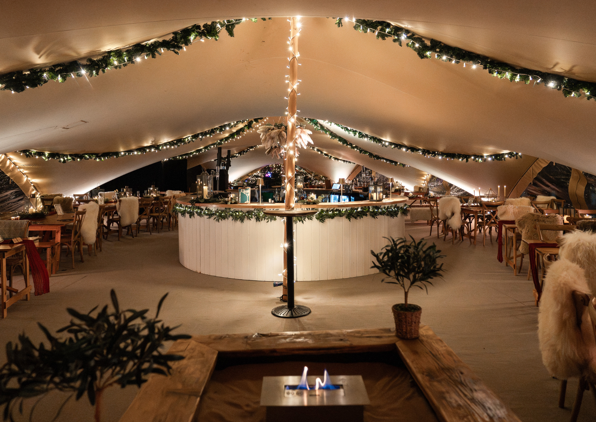 Beautifully styled venue, with fairy lights, candles, sheepskin rugs and fires.