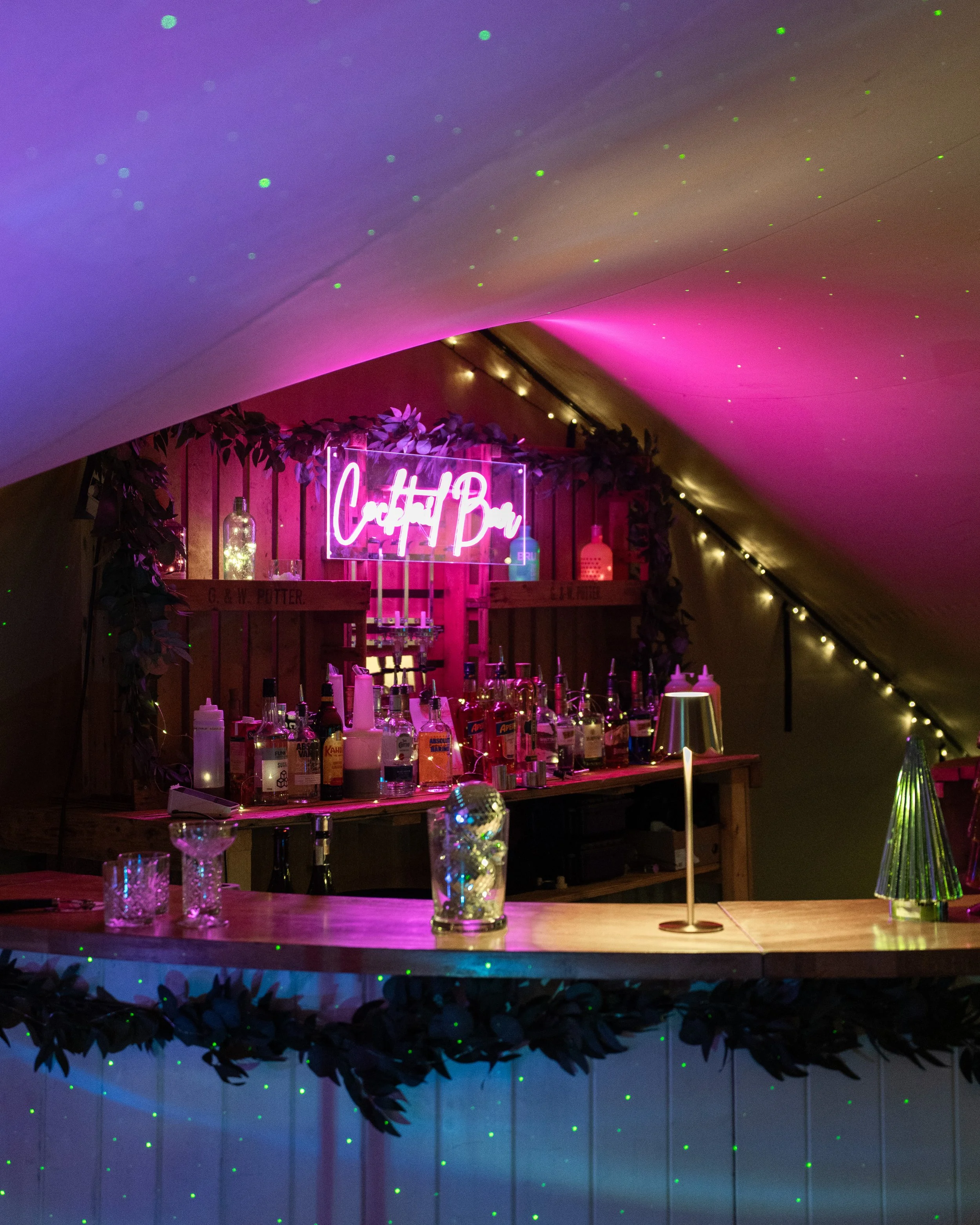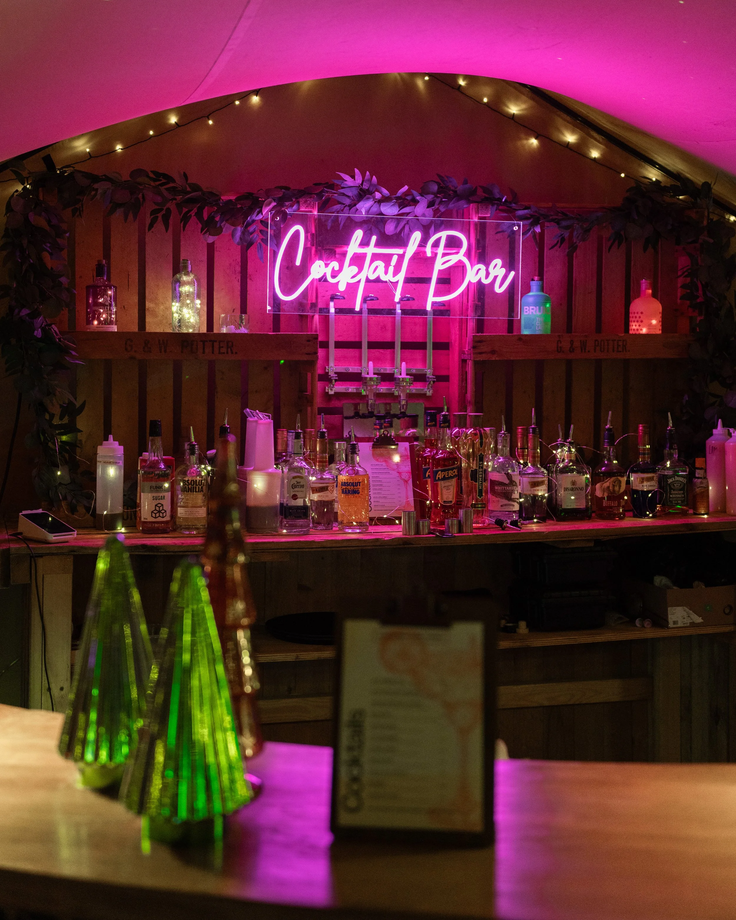 The main bar is situated at the heart of the party, right next to the dance floor. Bursting with atmosphere, it’s surrounded by stunning festive Nordic décor and features a carefully curated drinks menu with an extensive selection of alcoholic options alongside a great range of non-alcoholic choices.
